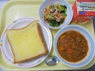 レモンシュガートースト 牛乳 グヤーシュ(ハンガリアンシチュー) こまツナサラダ