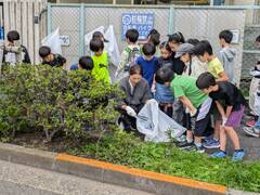 普段何気なく通っている登下校の道や学校の周りを掃除していきます。よく見てみるとたくさんのものが落ちていましたが、こどもたちの力できれいになりました。