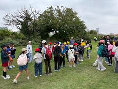 出発式ではスローガンを確認し、みんなが安全になかよく活動できるよう意識を高めました。行きは、なかよし班に分かれ、1~6学年までのこどもたちでまとまって行動していきます。6年生が主体となって計画を立て、どんな活動をするか決めました。