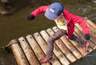 秋晴れの空の下、アスレチックに果敢に挑む子供たちの姿が見られました。