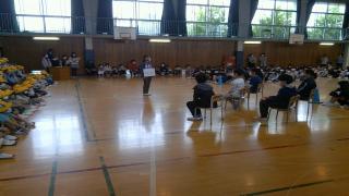 本日、1年生を迎える会を行いました。あいにくの雨模様でしたが、6年生と一緒に入場する1年生からは、たくさんの笑顔が見られました。2年生からは、朝顔の種、6年生からは、掃除に使える雑巾が1年生にプレゼントされました。1年生の皆さん、大事に使ってください。