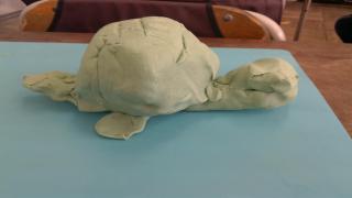 図工「にぎにぎねんど」では、にぎった形から「何に見えるかな?」と想像しながら、作品を作りました。にぎったねんどを重ねたり、つなげたり、並べたりして、楽しくねんどに触れました。