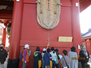 浅草では、観光ボランティアの方の案内を聞きながら、浅草の浅草寺や仲見世通りを回りました。ボランティアの方による話によく耳を傾け、浅草の歴史や仲見世通りの秘密などを知ることができたようです。