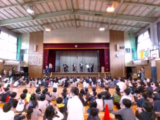 感染症防止の観点から、体育館に集まることができたのは、5年生・6年生と、花束とお手紙を渡す代表児童だけです。