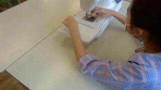 家庭科ではミシンを使っています。初めて使う人も多く、最初は苦戦していましたが、使い方がわかるとスイスイ縫うことができていました。ミシンの使い方を段々とマスターしてきたようです。