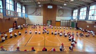 昨年度のやにし体育フェスティバルとはレベルアップし,隊形移動が複雑になります。その中でも,頑張って覚えています。