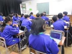 技術の時間は、タブレットを用いて情報セキュリティーについて学習を進めていました。ネットやSNSを含めて、今後の社会は情報の扱いがとても大切になってきますので、しっかり学んでほしいと思います。