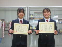 〇菅原 詩さん(3年) 奨励賞 〇末藤 嘉希さん(2年) 奨励賞