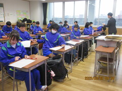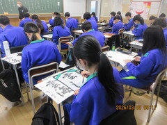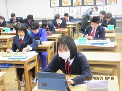 3年生は、本日都立高校一次・分割前期の合格発表です。よって受検した生徒は発表・手続きに向かい、残った生徒は卒業に向けた取組をしています。皆さんの努力が花咲くことを願っています。