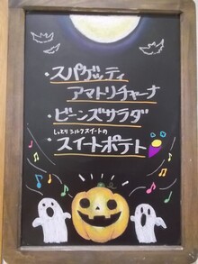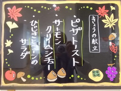 メニューは、パンプキンパン、魚のバジリコ焼き、キャロットラぺ、