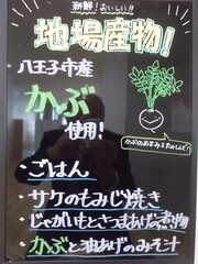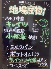 本日の給食は、八王子市産キャベツと江戸川区産小松菜使用の献立です。