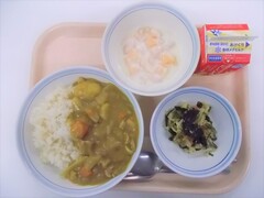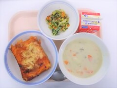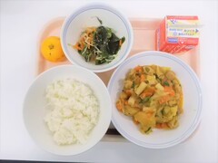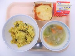 マッシュポテト、キャベツのカレースープ、牛乳です。
