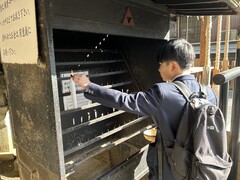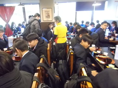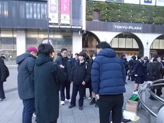蒲田駅出発チェックの様子です。朝7時15分、一番乗りの生徒です。