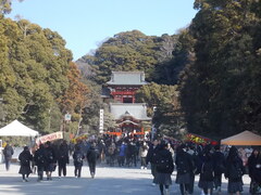 一番の名所、鶴岡八幡宮です。一時期よりも人出が少なく思えます。