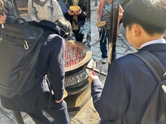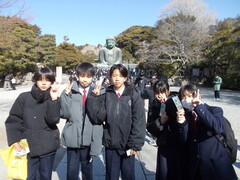 高徳院・鎌倉大仏です。初めて見る生徒たちは、「でかい」と感嘆の声をあげます。