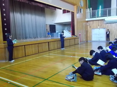 実行委員長からの話、管理職からの話、担当教諭からの細かい注意事項の確認など。明日は、3年生につながるような意識、そして行動を期待しています。