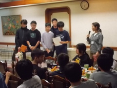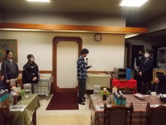 夕食の前に入館式を行いました。ホテル代表のお話、補助員・添乗員・看護師の紹介とお話をいただきました。