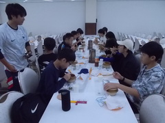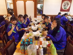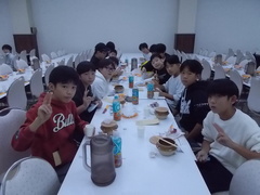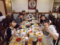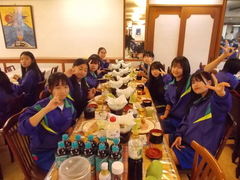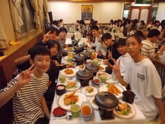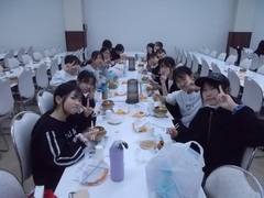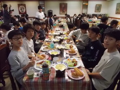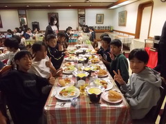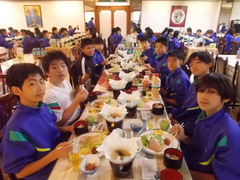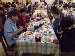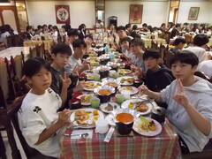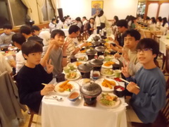1日目の夕食です。例年通りとてもボリューム感があり、美味しくて生徒たちもおかわりをしていました。
