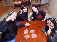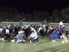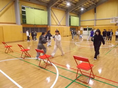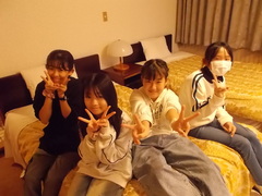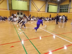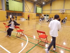夕食の後は、ホテルの体育館でレクリエーション大会です。体育館も新しく、レクリエーション係の進行で大盛り上がりでした。画像はおなじみの伝言リレーです。