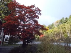 菅平はすでに紅葉です。標高1300m、早朝の気温は9℃、冬の気温です。