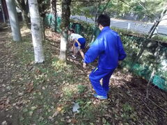 風で飛ばされたゴミを拾ってくれる生徒もいます。1