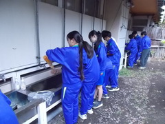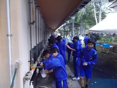 ごちそうさまのあとは、片付けです。飯盒のおこげもカレーの油も曲者です。次の人が気持ち良く使えるよう綺麗にしましょう。