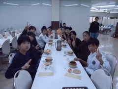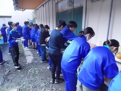 社長はじめ従業員の皆様に、代表生徒からお礼の言葉です。3日間色々とお世話になりました。楽しい移動教室が送れました。