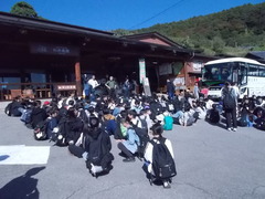 東部湯の丸SAで休憩と昼食です。残念ながら、菅平は雨模様でハイキングは中止、渋滞の遅れで昼食もバス内での昼食となりました。でも生徒たちは元気に行程を進めています。