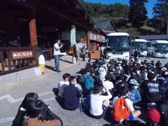 近隣に迷惑をかけないよう、チェックをしたらバス内集合です。大幅な遅刻者もなく無事出発です。