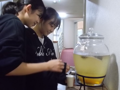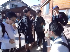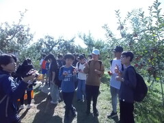 リンゴ狩りが終わったら、ソフトクリームのおやつです。お腹がパンパンの生徒も多いのでは。