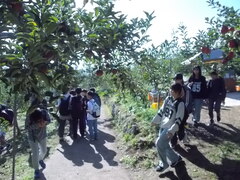 リンゴ狩りを行う松井農場に到着しました。菅平高原から一時間程のきれいな観光農園です。