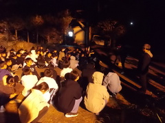 夕食の後は星空観察です。まずはホテル前に集合整列です。
