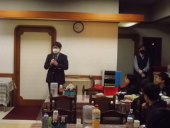 朝食後の退館式です。ホテルの社長さんからの挨拶です。