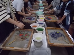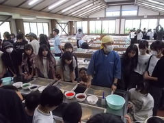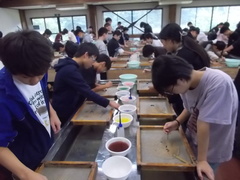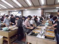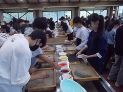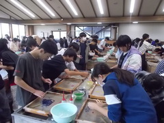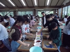 和紙作りのインストラクターから全生徒に和紙についてのお話と諸注意です。