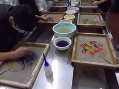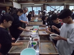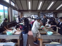 立岩和紙の里に到着です。ここで和紙の団扇づくりの体験を行います。