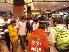 昼食にあわせて、自分や家へのお土産を購入しています。限られたお小遣いのため、悩んでいる生徒も多いです。