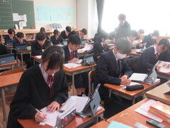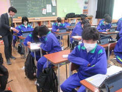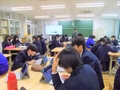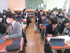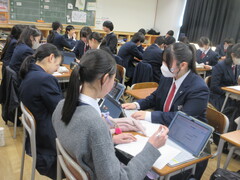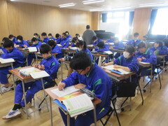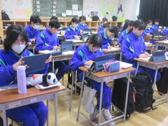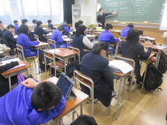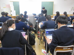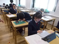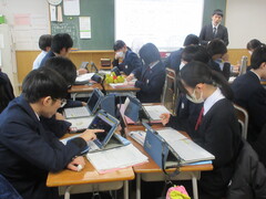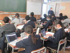 技術の時間は、タブレットを用いて情報セキュリティーについて学習を進めていました。ネットやSNSを含めて、今後の社会は情報の扱いがとても大切になってきますので、しっかり学んでほしいと思います。