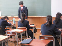 今日は臨時朝礼を行いました。新しく着任した、数学の先生を