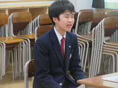 今日は、3年生の杉山 旦陽さんが生徒代表の言葉を発表しました。各学年の