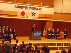 大田区立中学校生徒海外派遣報告会が10月26日(日曜)の午後、池上会館で開催されました。各中学校から2名の代表生徒が、アメリカのセーラム市とオーストラリアのパース市に、夏休み中の12日間海外派遣を行い、その報告を行いました。