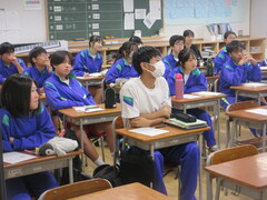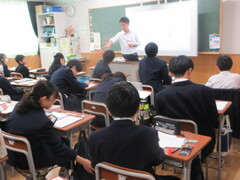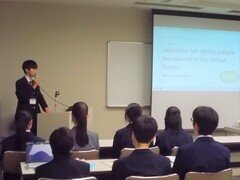 アメリカのセーラム市に行った本校の代表生徒は、温泉について現地で発表したことを報告しました。