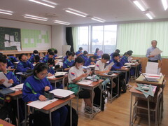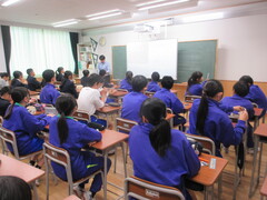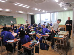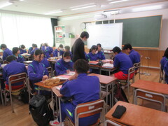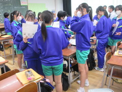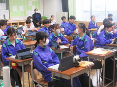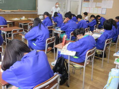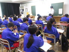 ペアで英文を繰り返し練習していました。ALTの先生が複数いるので、