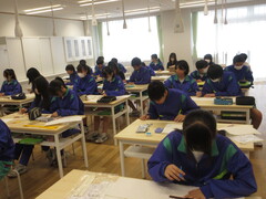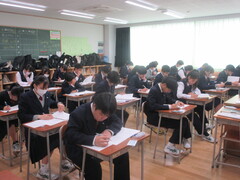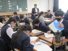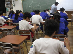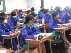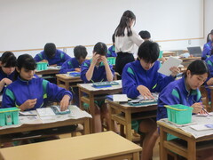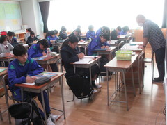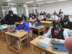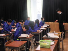 図形の問題を解いていましたが、3年生の授業は緊張感がありますね。