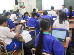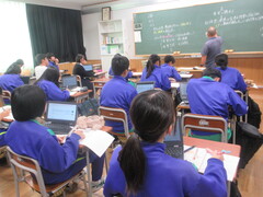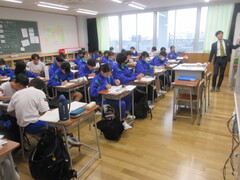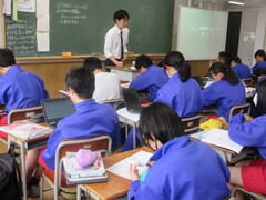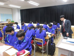 新しく着任した先生が、さっそく授業をしていました。文法を研究して