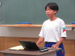 今日は、「わたしの好きなもの」についてスピーチをしていました。顔をあげて、