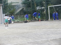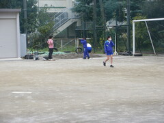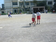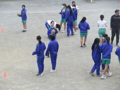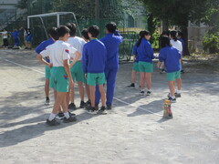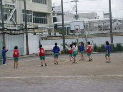 今日はハンドボールをしていました。狭い校庭でも十分な運動量