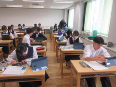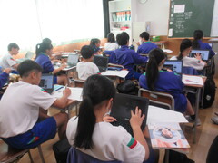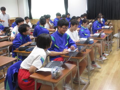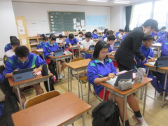 今日は、図形の相似について学習していました。タブレットを使って学習する