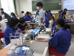 仕事に関する実験をして、考察やまとめをしていました。先生や理科指導員の