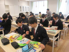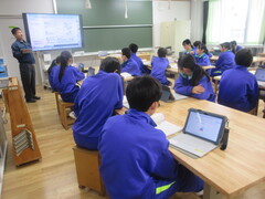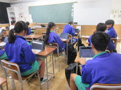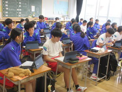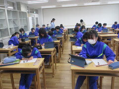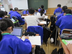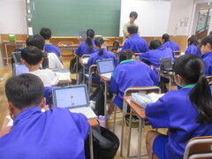 先生から、提出物の確認などのお話がありました。タブレット上で提出する