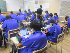 今日は、「構想と設計」について学習していました。タブレットで設計図を